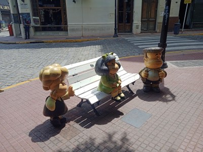 Pegamos um ônibus e visitamos a Plaza Mafalda (dedicadas aos quadrinhos do Quino) e passeamos por El Camino de la Estorieta (uma rua onde tem várias estátuas dos personagens das histórias em quadrinhos argentinas.