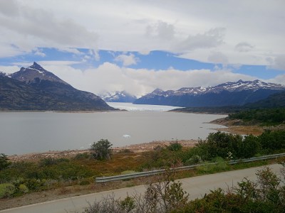 Continuamos na estrada, e na fila da balsa, percebi que o pneu traseiro estava murcho e todo deformado (defeito de fabricação). Ali mesmo troquei, e terminei de encher o estepe, que estava meio murcho – aff! Seguimos, passamos a outra aduana e toca viagem… Paramos em El Calafate. Cidade cara, tudo lotado, que perrengue pra achar hospedagem! Já por volta das 23h, acabamos ficando em um hotel, Kelta. Não muito barato, e atendimento ruim.