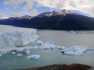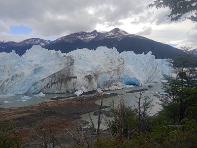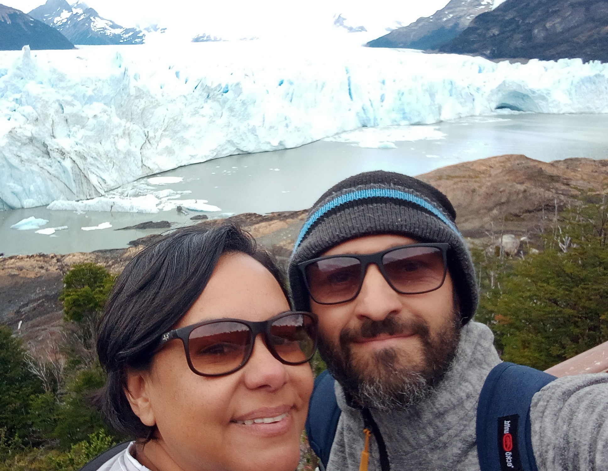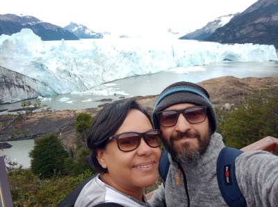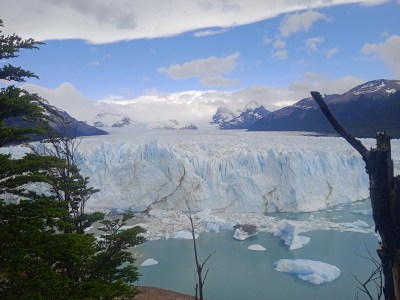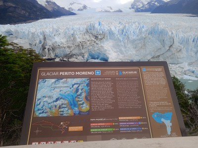 Seguimos de carro alguns quilômetros no parque, paramos em alguns mirantes, e chegamos no estacionamento. Lá, os visitantes pegam um ônibus (gratuito) que leva ao início das passarelas com vista para o Glaciar Perito Moreno. O Glaciar é um acúmulo de gelo imenso que desce da cordilheira até o Lago Argentino. Os blocos de gelo vão de descolando do glaciar e caem, fazendo estrondos. O Glaciar ao todo tem cerca de 400km de extensão, e cerca de 50m de altura na parte onde é visitado. O glaciar é incrível, vale demais conhecer! O parque tem várias passarelas, e caminhos para ver o glaciar de vários ângulos. Dica: Leve blusa, gorro, luvas… o vento que vem do glaciar é forte e gelado!