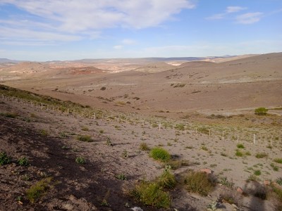 Saímos do parque e pegamos estrada, pela Ruta 40, em direção ao norte. Já no final da tarde, ainda nessa rota, pegamos um trecho de 70km de rípio (terra, pedra). E aí começou o perrengue! Nessa hora, lembrei que dois dias antes, o pneu tinha murchado e esquecemos de resolver isso, ou seja, estávamos sem estepe.