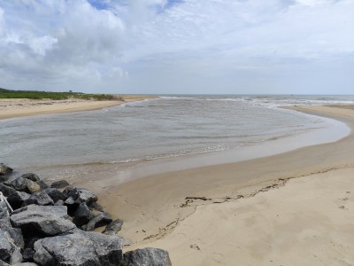 Seguimos adiante, e com mais chuva e ventos, chegamos em Pontal do Ipiranga-ES (pertence à Linhares). Ficamos no Hotel Villa Noni. No dia seguinte fomos à Foz do Riozinho. Lugar lindo, com pouco movimento, agua limpa e tranquilo. Montamos nossa “tenda” ali e ficamos o dia todo. Eu e a Mi jantamos porção num boteco.